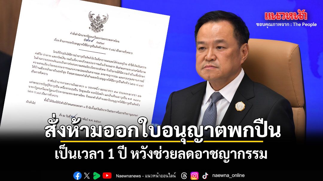 ล้อมคอกพวกพกปืนก่อเหตุร้าย! อนุทิน สะบัดปากกาเซ็นคำสั่งห้ามออกใบอนุญาตให้มีอาวุธปืน(ป.12) แก่ปชช.เป็นเวลา1ปี ช่วยลดอาชญากรรม - คุมสถานการณ์ให้ปกติ
