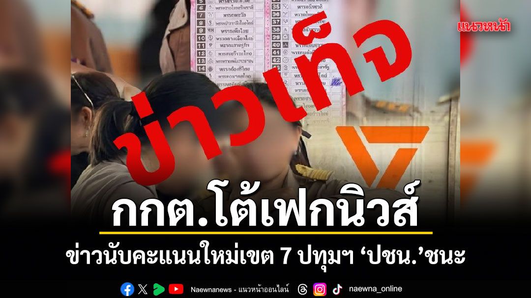 20 กุมภาพันธ์ 2569 ศูนย์ต่อต้านข่าวเท็จ สำนักงานคณะกรรมการการเลือกตั้ง (กกต.) ชี้แจงกรณีเฟซบุ๊กเพจไทบ้าน ได้มีการเสนอข่าวว่า "พลังจับตาของ ปชช.เห็นผลแล้ว!" ผลนับคะแนนใหม่ ปทุมธานี เขต 7 .....ออกมาแล้ว....พรรคประชาชนคว้าชัยชนะแบบขาดลอย ทิ้งห่างคู่แข่งแบบไม่เห็นฝุ่น ทั้ง สส.เขต และบัญชีรายชื่อ!......พรุ่งนี้รอลุ้นผลรวมทั้งเขตแบบเป็นทางการก่อนเที่ยง!.... คิดว่าจะมีการพลิกล็อกอีกไหม? คอมเมนต์ มาคุยกันครับ!" นั้น