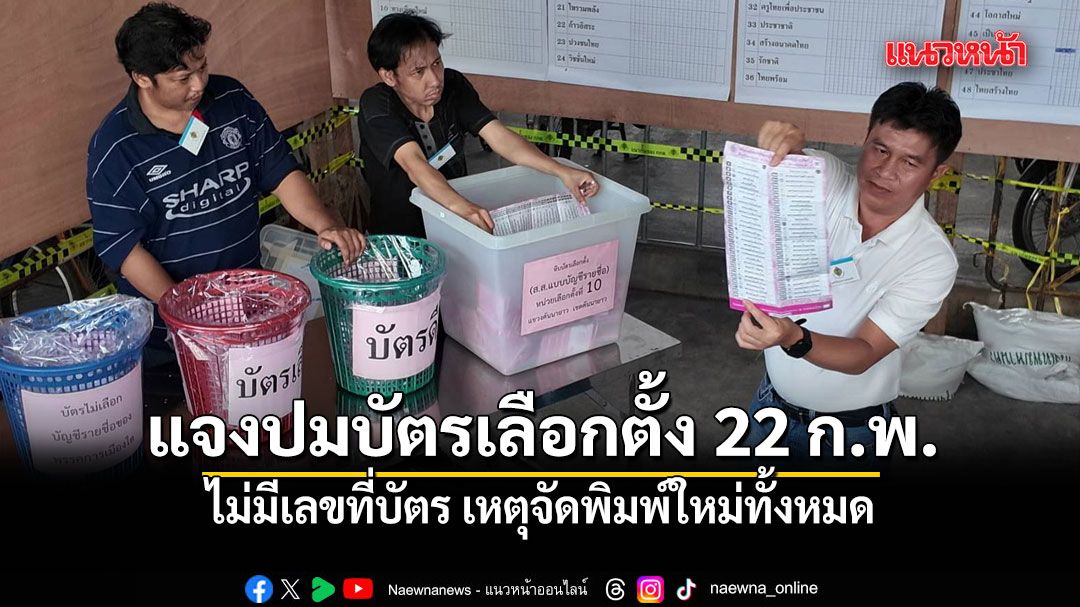 บัตรเลือกตั้ง 22 ก.พ.ไม่มีเลขที่บัตร เหตุจัดพิมพ์ใหม่ทั้งหมด คนในเผยบัตรเลือกตั้งวันที่ 8 ก.พ. ถูกทำลายหมดแล้ว ไม่ได้นำมาใช้ซ้ำ ทำตามระเบียบ