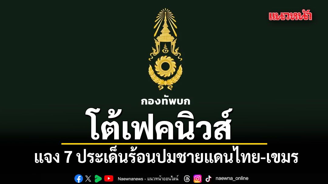 ทบ.โต้เฟคนิวส์ แจง 7 ประเด็นร้อนหลังเพจต่างชาติรับข้อมูลด้านเดียว ปมชายแดนไทย-กัมพูชา ยืนยันไทยไม่ได้ใช้กำลังเกินกว่าเหตุ