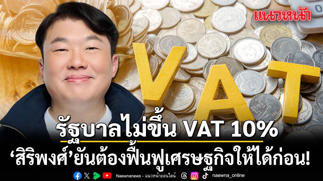 ‘สิริพงศ์’ ยันไม่มีแนวคิดขึ้น VAT เป็น 10% ภายใน 2-3 ปีนี้แน่นอน ชี้นโยบายเร่งด่วน ต้องฟื้นฟูเศรษฐกิจ ขึ้นมาจากหล่มให้ได้ก่อน ไม่ใช่มารีดภาษีประชาชน ขอเชื่อมั่นรัฐบาล