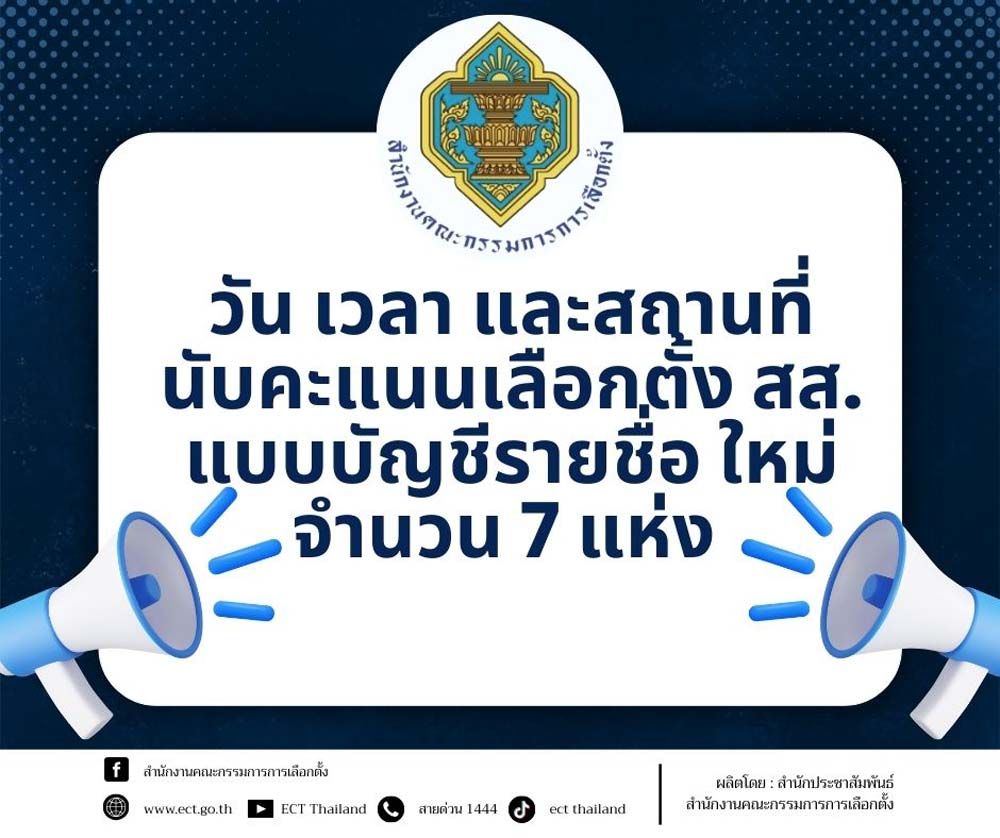 กกต.แจ้งพิกัดนับคะแนนสส.ใหม่ 7 แห่งใน4จว.วันที่26-27ก.พ.นี้ ส่วนหย่อนบัตรใหม่ หน่วยที่ 6 เขต 1จ.พะเยา กำหนดวันอาทิตย์ที่ 1 มี.ค.