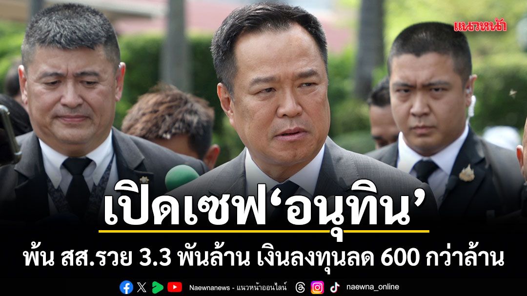 ป.ป.ช.เปิดเซฟอนุทิน พ้น สส.รวย 3.3 พันล้าน เงินลงทุนลด 600 กว่าล้าน เหตุคืนหุ้นซิโน-ไทย หลังพ้นตำแหน่ง