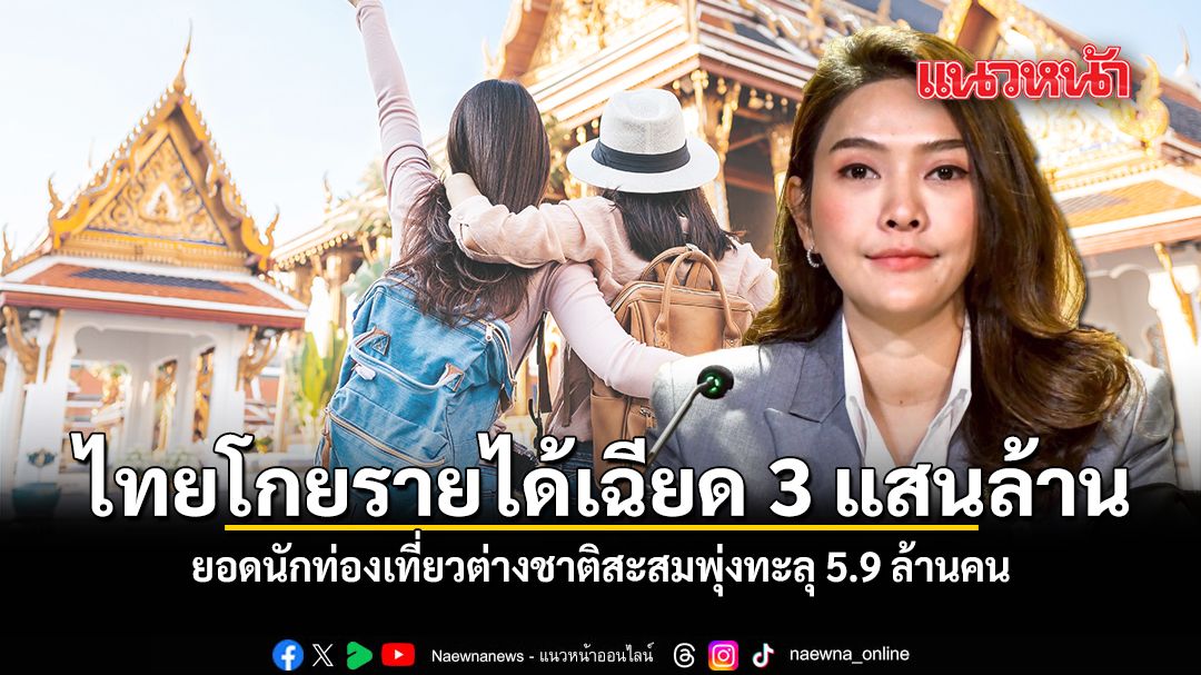 นางสาวอัยรินทร์ พันธุ์ฤทธิ์ รองโฆษกประจำสำนักนายกรัฐมนตรี เปิดเผย รัฐบาลปลื้ม ภาพรวมสถานการณ์ท่องเที่ยวตั้งแต่วันที่ 1 มกราคม - 22 กุมภาพันธ์ 2569 ที่ผ่านมา ประเทศไทยมีจำนวนนักท่องเที่ยวชาวต่างชาติสะสมทั้งสิ้น 5,947,434 คน สร้างรายได้จากการใช้จ่ายของนักท่องเที่ยวต่างชาติแล้วประมาณ 293,119 ล้านบาท โดยจำนวนนักท่องเที่ยวสูงสุด 5 อันดับแรก ได้แก่ จีน 969,505 คน มาเลเซีย 573,323 คน รัสเซีย 457,250 คน อินเดีย 376,738 คน และเกาหลีใต้ 283,623 คน