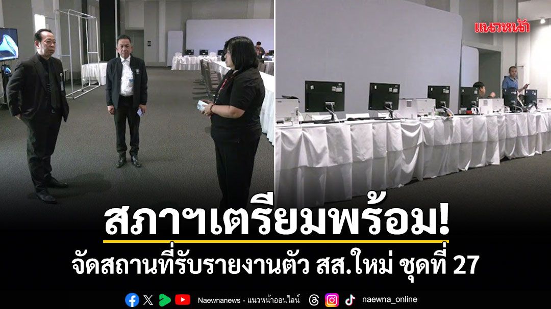 "เลขาสภาฯ"ลงตรวจความเรียบร้อยสถานที่รับรายงานตัว สส.ใหม่ ยันพร้อมแล้ว 80% ติดขัดแค่"บัตรประจำตัว สส."เร่งดำเนินการให้ทัน พร้อมอำนวยความสะดวกจัดคิวเข้ารายงานตัวรอบละ 40 คน - ขอร่วมมือผู้แทนฯกรอกข้อมูลผ่านระบบ e-form ล่วงหน้า