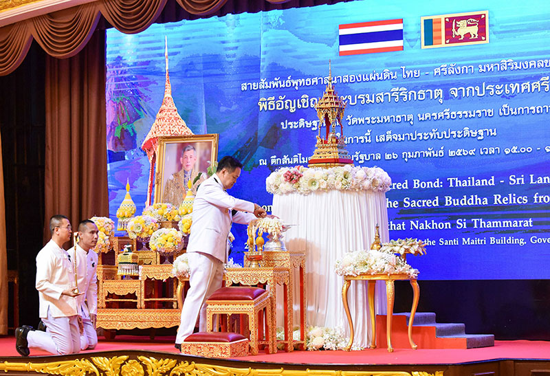 นายกฯเป็นประธานในพิธีอัญเชิญพระบรมสารีริกธาตุจากศรีลังกา ประดิษฐานชั่วคราว ณ ทำเนียบรัฐบาล ก่อนนำไปประดิษฐานเป็นการถาวร ณ วัดพระมหาธาตุวรมหาวิหาร จังหวัดนครศรีธรรมราช ท่ามกลางบรรยากาศที่เปี่ยมด้วยความเลื่อมใสศรัทธา สะท้อนสายสัมพันธ์พระพุทธศาสนาไทย–ศรีลังกาอย่างแน่นแฟ้น