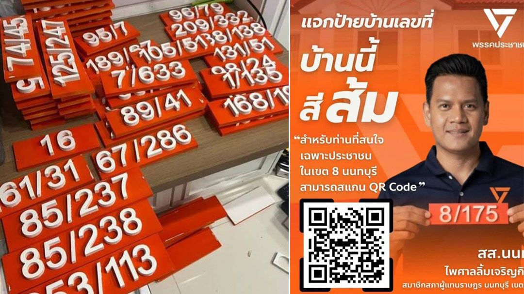 วันนี้ผมและพรรคประชาชน จึงขอเชิญชวนทุกท่านในนนทบุรี เขต 8 บางบัวทอง ไทรน้อย บางบัวทอง (บางรักพัฒนา บางรักใหญ่ บางคูรัด) ไทรน้อย(หนองเพรางาย ทวีวัฒนา ขุนศรี ไทรใหญ่ ราษฎร์นิยม) โดยให้ลงทะเบียนร่วมโครงการ แจกป้ายเลขที่บ้าน “บ้านนี้สีส้ม” ฟรี อีกครั้ง