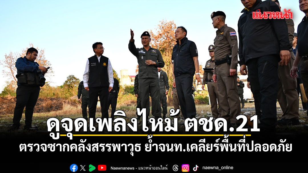 อนุทิน ไปต่อ! ดูจุดเพลิงไหม้ ตชด.21 ตรวจซากคลังสรรพาวุธหลังเหตุไฟไหม้ปะทุ ย้ำเจ้าหน้าที่เคลียร์พื้นที่ระเบิดตกค้างปลอดภัย พร้อมสั่งรายงานความเสียหายละเอียด