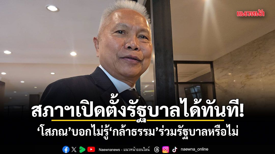 "โสภณ"บอก สภาฯเปิดก็ตั้งรัฐบาลได้เลย ไม่รู้มี"กล้าธรรม"ร่วมรัฐบาลหรือไม่ ระบุถ้าได้เป็น"ปธ.สภาฯ"ทำงานร่วมกับทุกคนได้