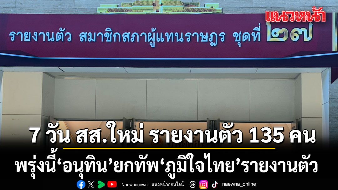 สภาฯรายงานตัววันที่ 7 ทั้งวันทยอยมา 16 คน รวม135คน ขณะที่ไฮไลท์พรุ่งนี้ ‘อนุทิน’เตรียมนำทีม สส. ภูมิใจไทยนั่งรถบัสเข้ารายงานตัว ด้าน ‘อภิสิทธิ์ -ธรรมนัส‘ ขนทัพมาวันที่ 6 มี.ค.