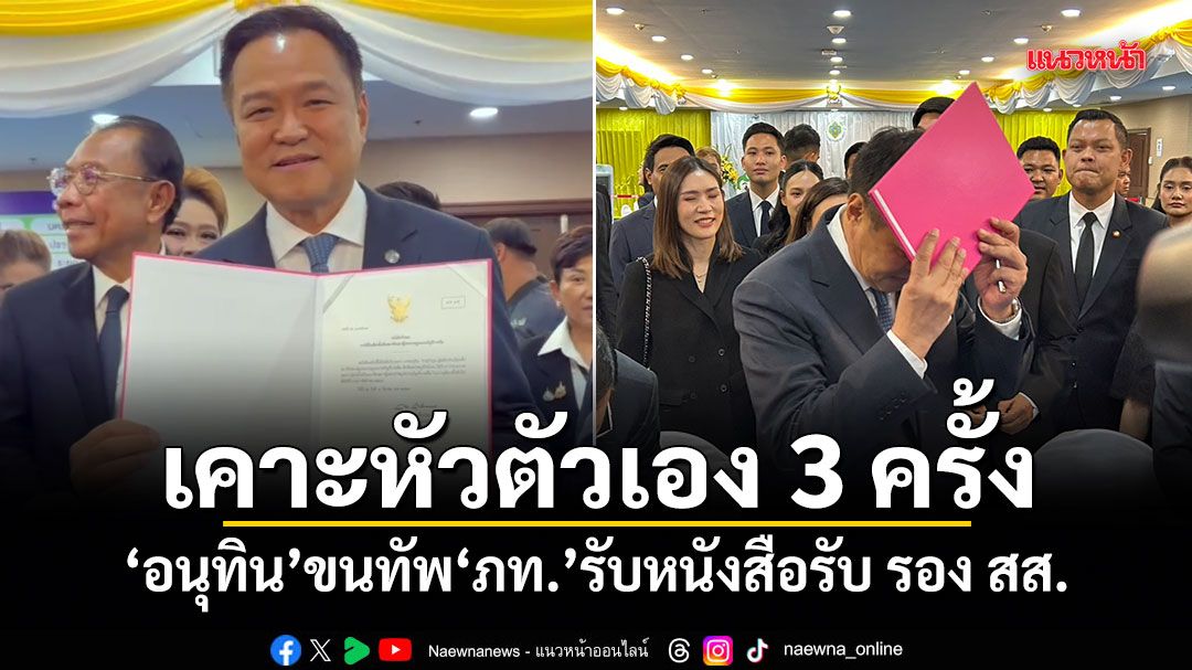 ทั้งนี้ ผู้สื่อข่าวรายงานว่า ภายหลังรับหนังสือรับรอง นายอนุทิน ได้นำหนังสือรับรอง สส.เคาะที่หัวตนเอง 3 ครั้ง