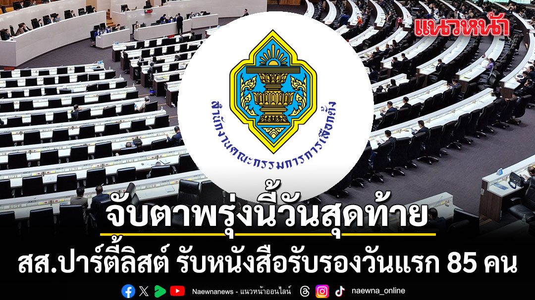 สส.ปาร์ตีลิสต์ รับหนังสือรับรองวันแรก 85 คน “เพื่อไทย”ขาด 11 คน ส่วน “ภูมิใจไทย” เหลือนายกฯ เบี้ยว ขณะที่ “พีระพันธุ์-ทวี-กังฟู”ยังไม่มา จับตาพรุ่งนี้วันสุดท้าย