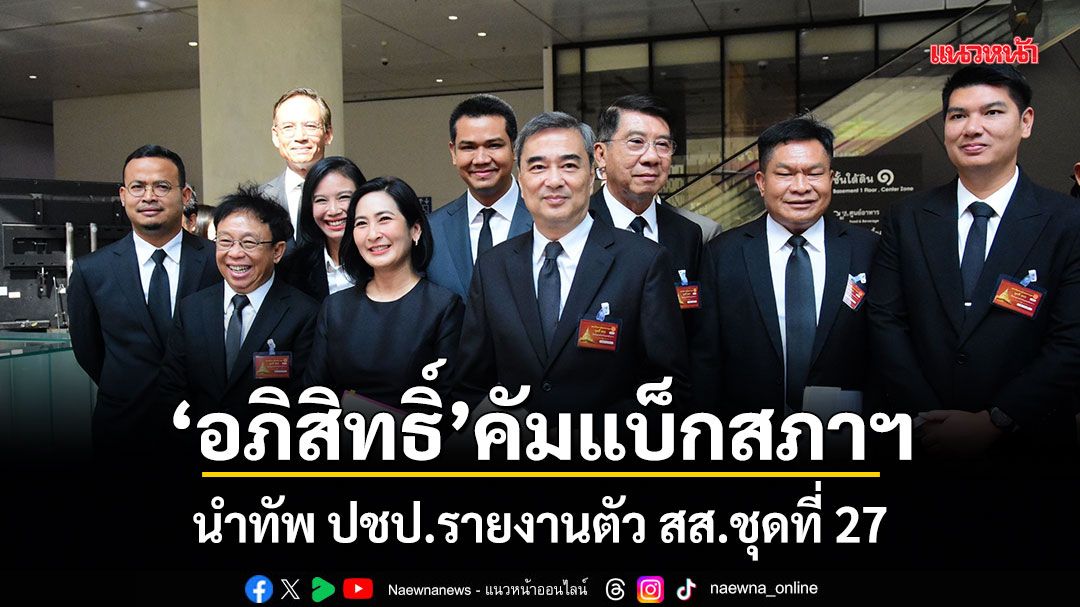6 มีนาคม 2569 ที่อาคารรัฐสภา ผู้สื่อข่าวรายงานบรรยากาศการรายงานตัวสมาชิกสภาผู้แทนราษฎร (สส.) ชุดที่ 27 เป็นไปอย่างคึกคัก โดยในวันนี้ (6 มี.ค.) นายอภิสิทธิ์ เวชชาชีวะ หัวหน้าพรรคประชาธิปัตย์ (ปชป.) และ สส.แบบบัญชีรายชื่อ ลำดับที่ 1 พร้อมแกนนำพรรคฯ และบรรดา สส.บัญชีรายชื่อของพรรคฯ ได้เดินทางมายังบริเวณชั้น B1 อาคารรัฐสภา เพื่อรายงานตัวต่อสำนักงานเลขาธิการสภาผู้แทนราษฎร กันอย่างพร้อมเพรียง