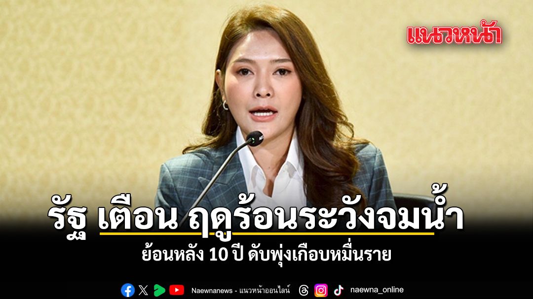 นางสาว อัยรินทร์ พันธุ์ฤทธิ์ รองโฆษกประจำสำนักนายกรัฐมนตรี เปิดเผย ช่วงฤดูร้อนของทุกปี (เดือนมีนาคม – พฤษภาคม) มักมีผู้เสียชีวิตจากการจมน้ำ ซึ่งจากข้อมูลย้อนหลัง 10 ปี ระหว่างปี พ.ศ. 2559 – 2568 พบมีผู้เสียชีวิตเฉลี่ยปีละ 964 ราย โดยกลุ่มอายุ 45 – 59 ปี มีสัดส่วนเสียชีวิตมากที่สุด ร้อยละ 27.9 รองลงมาคือ อายุ 60 ปีขึ้นไป ร้อยละ 21.7 และอายุต่ำกว่า 15 ปี ร้อยละ 20.3 อย่างไรก็ตาม ในช่วงปิดเทอมการจมน้ำเสียชีวิตในเด็กสูงถึง 1 ใน 3 ของการจมน้ำตลอดทั้งปี