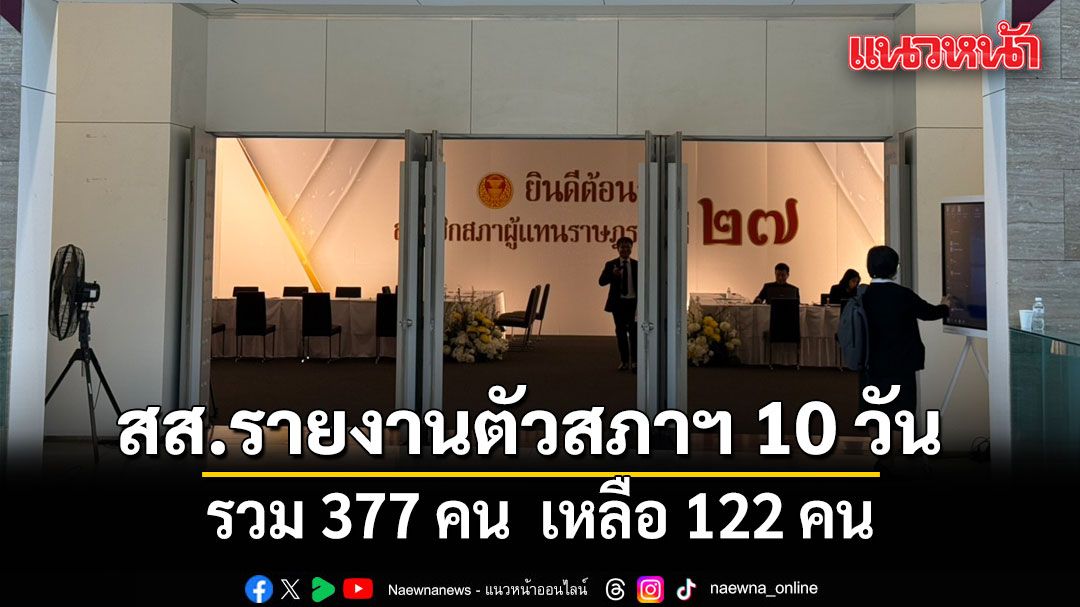 ขณะที่ยังคงเหลือสส.ที่ยังไม่มารายงานตัวจำนวน 122 คน จากพรรคประชาชน 119 คน พรรคประชาธิปัตย์ 1 คน พรรครวมไทยสร้างชาติ 1 คน และพรรคไทยภักดี 1 คน