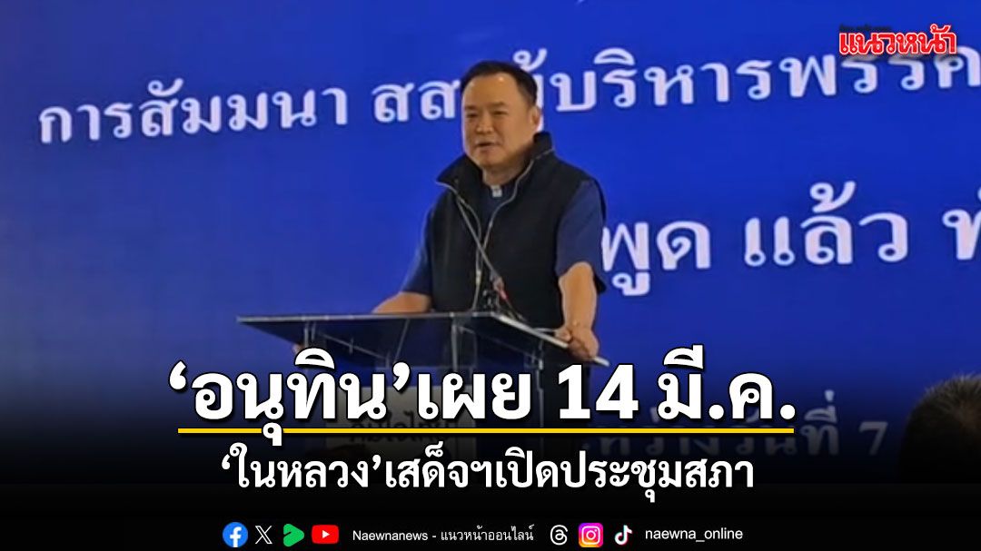 ’อนุทิน‘เผย 14 มี.ค.ในหลวงเสด็จทรงเปิดประชุมสภา ปลุกสส.น้ำเงินเป็นปึกแผ่น ยกบทเรียนขู่แหกคอกสอบตกหมด แนะพกคัมภีร์จริยธรรม เข้มคัดกรองประวัติทีมงาน ลั่นสส.น้ำเงินเพิ่มขึ้นทุกเลือกคั้ง ทะยานได้อีก