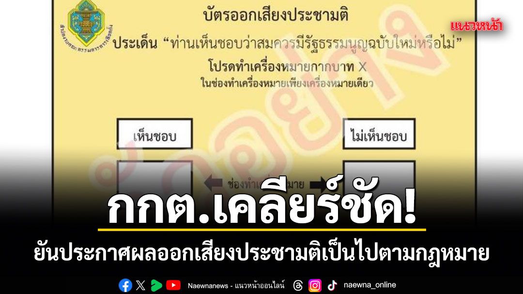 ทั้งนี้ สำนักงานคณะกรรมการการเลือกตั้ง ยืนยันว่า การดำเนินการประกาศผลประชามติ เป็นไปตามบทบัญญัติของกฎหมาย และได้เปิดเผยข้อมูลต่อสาธารณะอย่างโปร่งใส