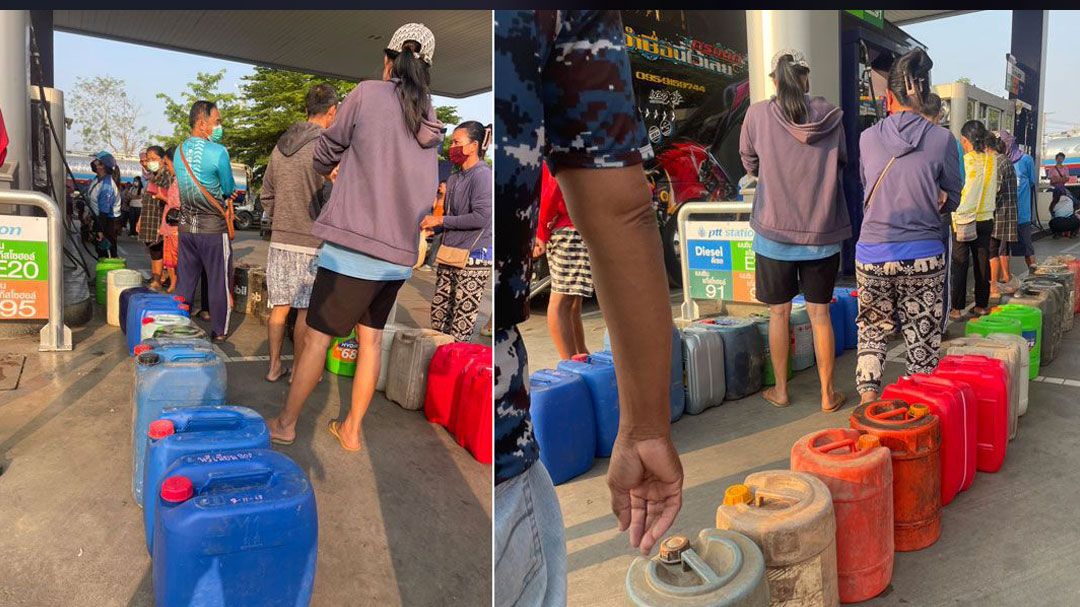 จากการตรวจสอบพบว่าน้ำมันดีเซลในหลายปั๊มหมดเกลี้ยงถังภายในเวลาเพียง 2 ชั่วโมง เนื่องจากมีกลุ่มรถบรรทุกและรถเกษตรกรเข้ามาเติมเต็มถังอย่างต่อเนื่อง จนผู้ประกอบการต้องประกาศงดจำหน่ายใส่แกลลอนทุกชนิดเพื่อป้องกันการกักตุน ขณะที่สถานีบริการน้ำมัน ปตท. ซึ่งเป็นที่พึ่งสุดท้ายในพื้นที่ ต้องออกมาตรการฉุกเฉิน จำกัดการเติมไม่เกินคันละ 1,000 บาท เพื่อประคับประคองให้น้ำมันเหลือถึงมือผู้ใช้บริการรายย่อยได้ทั่วถึงที่สุด ท่ามกลางกระแสความกังวลว่าหากช่องแคบฮอร์มุซ ถูกปิดจากการสู้รบ จะทำให้ประเทศไทยเข้าสู่สภาวะขาดแคลนพลังงานในระดับวิกฤต