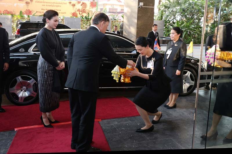 นางเข็มมะนี พนเสนา รัฐมนตรีประจำสำนักงานประธานประเทศ นายสะพังทอง สีพันดอน เจ้าครองนครหลวงเวียงจันทน์ นายทองสะหวัน พมวิหาน รัฐมนตรีว่าการกระทรวงการต่างประเทศ ในฐานะรัฐมนตรีเกียรติยศผ่ายลาว และภริยารัฐมนตรี นายสีสะหวาด อินพะจัน เอกอัครราชทูตสาธารณรัฐประชาธิปไตยประชาชนลาวประจำประเทศไทย พร้อมด้วยนางครองขนิษฐ รักษ์เจริญ เอกอัครราชทูต ณ เวียงจันทน์ เฝ้าทูลละอองธุลีพระบาทรับเสด็จ