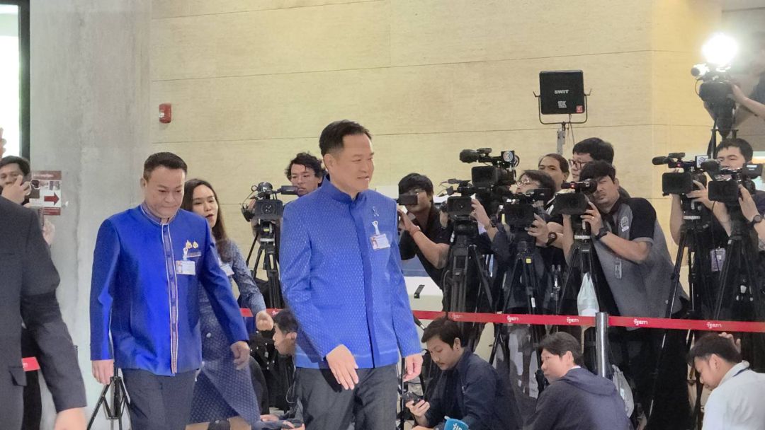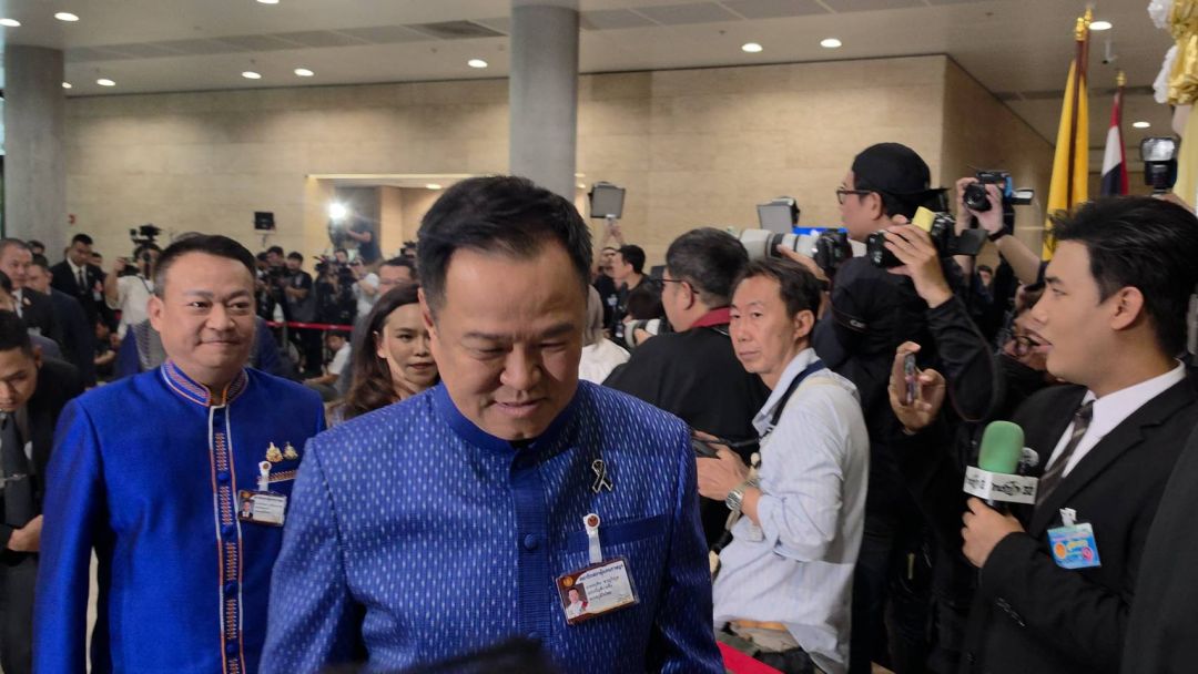 อนุทิน ถึงสภาฯ แล้ว ยิ้มทักทายสื่อมวลชน ถกหัวหน้าพรรคร่วมรัฐบาล ก่อนโหวตนายกฯ