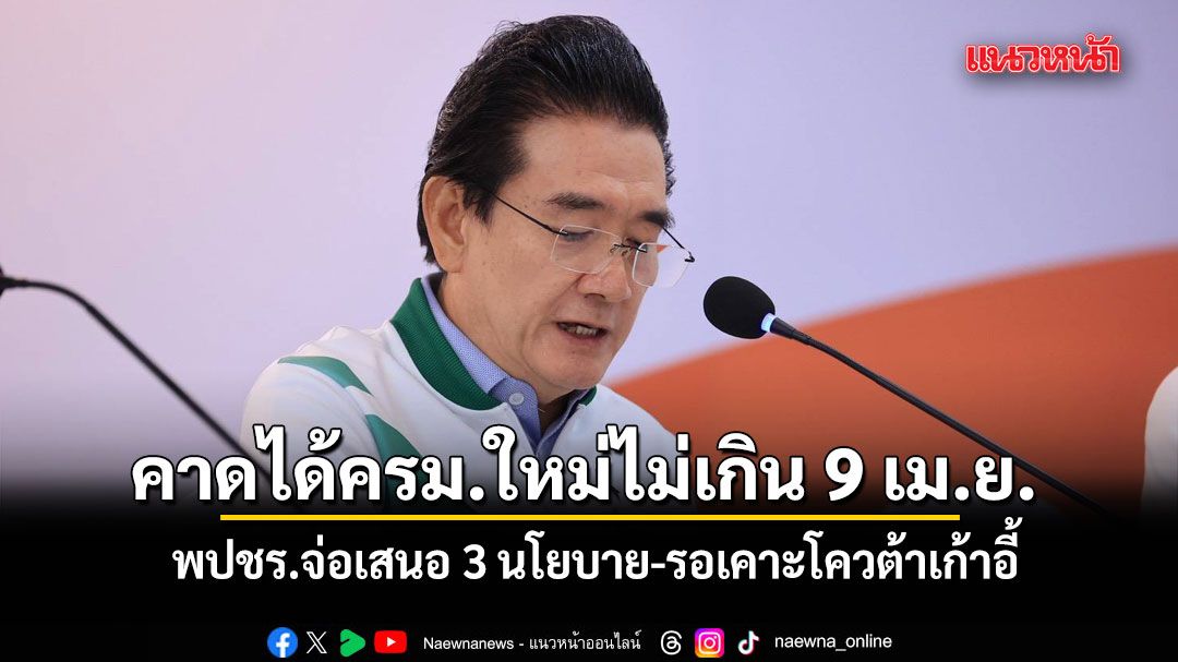 พปชร.จ่อเสนอ 3 นโยบายให้รัฐบาลพิจารณา เชื่อ ได้ครม.ชุดใหม่ ไม่เกิน 9 เม.ย. ขณะรายชื่อยังอยู่ขั้นตอนตรวจสอบคุณสมบัติ ส่วนพรรคจะได้นั่งเก้าอี้ไหน ขอรอรัฐบาลแจ้งอีกครั้ง