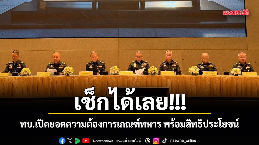 ทบ.เปิดยอดความต้องการเกณฑ์ทหารปี 69 จำนวน 84,380 นาย สมัครออนไลน์แล้ว 22,062นาย เกณฑ์จริง 62,318 นาย พร้อมสิทธิประโยชน์ 11,000 บาท/เดือน ตรวจสุขภาพจิตครูฝึก ควบคุมมาตรการลงโทษ พร้อมปลดล็อกเหยื่อบัญชีม้า