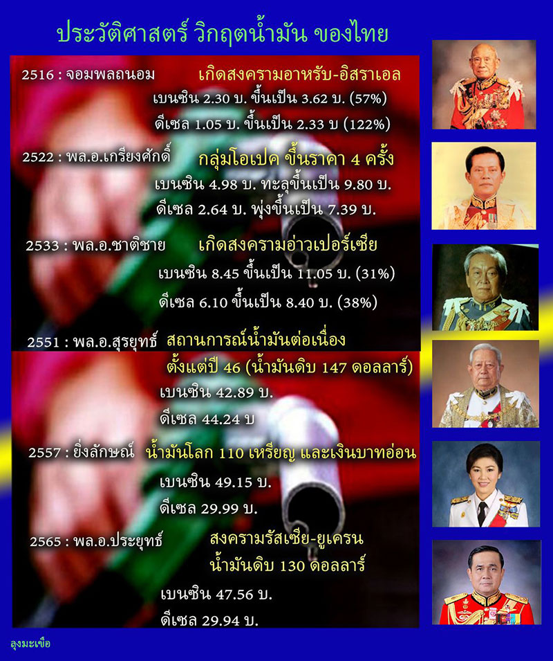 พ.ศ. 2551 ในสมัยพล.อ.สุรยุทธ์ - เกมสงครามราคาน้ำมันที่โลกไม่สามารถควบคุมเองได้ ก็ยังคงเล่นกันเองในตะวันออกกลาง . น้ำมันดิบขึ้นสูงสุดถึง 147 ดอลลาร์ ต่อบาร์เรล
