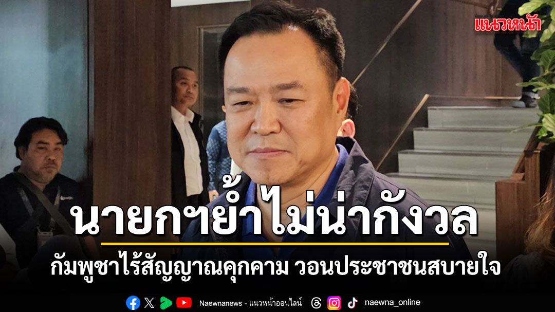 ‘อนุทิน’ ย้ำชายแดนไทย-กัมพูชา ไม่มีอะไรน่าห่วง หลัง เสธ.ทบ.รายงานแค่เคลื่อนย้ายกำลังพลตามปกติ ขอให้ ปชช.สบายใจได้ ลั่น “นายกฯ ตอบแล้วไม่มีอะไรน่ากังวล” ขอให้ตัดเรื่องนี้ออกไป หลังสื่อถามโอกาสปะทะรอบใหม่