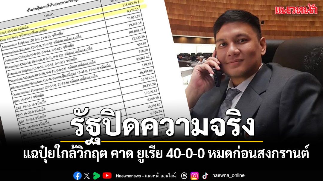 ไผ่ ลิกค์ แฉปุ๋ยใกล้วิกฤต คาด ยูเรีย 40-0-0 หมดก่อนสงกรานต์ ซัดรัฐปิดความจริง ปล่อยเกษตรกรเสี่ยงหมดตัว จี้ ศุภจี เร่งแก้ด่วน ก่อนซ้ำรอยวิกฤตน้ำมัน