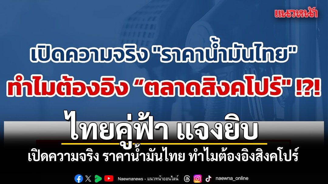 ไทยคู่ฟ้า แจงยิบ เปิดความจริง ราคาน้ำมันไทย ทำไมต้องอิงสิงคโปร์