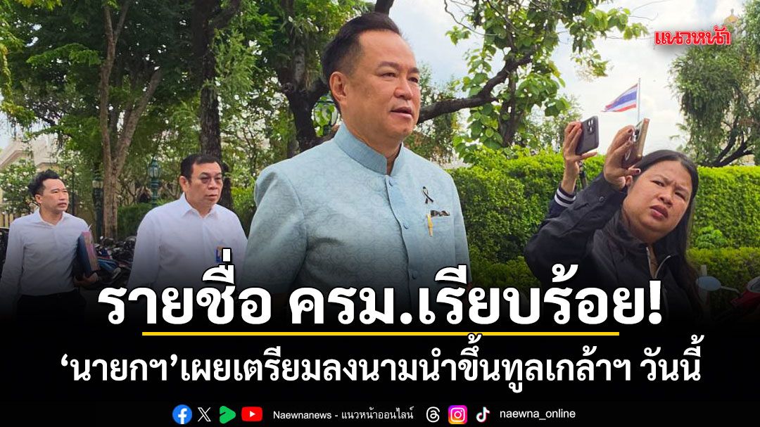 30 มีนาคม 2569 เมื่อเวลา 09.37 น.ที่ผ่านมา ที่ทำเนียบรัฐบาล นายอนุทิน ชาญวีรกูล นายกรัฐมนตรี เปิดเผยถึงความเรียบร้อยรายชื่อคณะรัฐมนตรี (ครม.) ก่อนนำขึ้นทูลเกล้าทูลกระหม่อม ว่า เรียบร้อยดี สามารถนำขึ้นทูลเกล้าฯ ได้เลย โดยต้องรีบพิจารณาเอกสารและดำเนินการนำขึ้นทูลเกล้าฯ ให้เร็วที่สุด