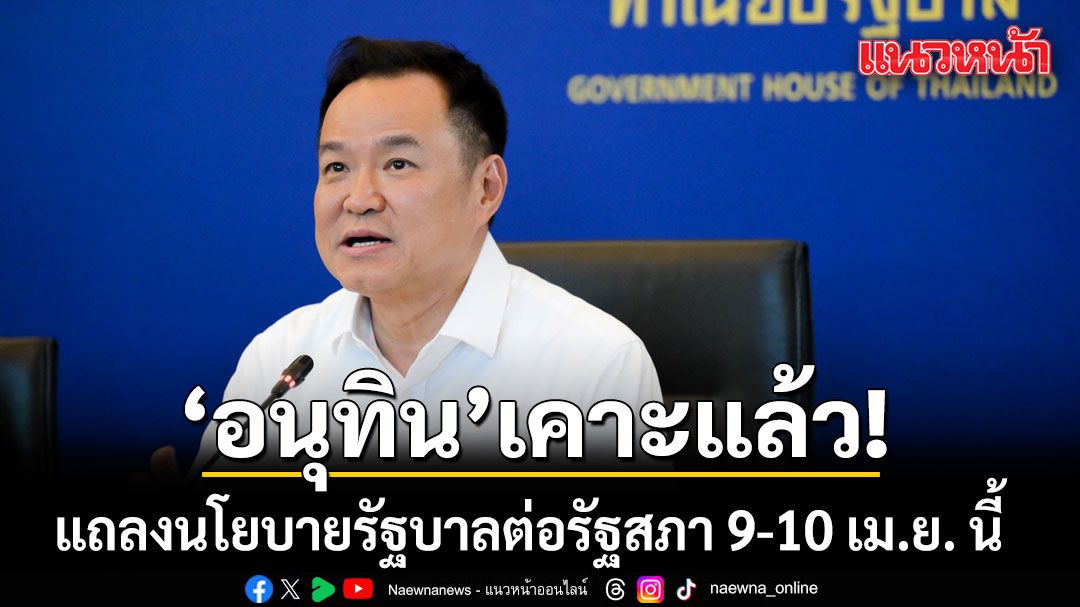 วันที่ 31 มีนาคม 2569 ผู้สื่อข่าวรายงานว่า สำหรับการแถลงนโยบายต่อที่ประชุมรัฐสภา จะมีขึ้นในวันที่ 9-10 เมษายน ภายหลังนายอนุทิน ชาญวีรกูล นายกรัฐมนตรี นำคณะรัฐมนตรีชุดใหม่เข้าเฝ้าถวายสัตย์ฯ ในวันที่ 6 เมษายน ซึ่งจะต้องเว้นระยะ 3 วัน เพื่อประสานส่งร่างคำแถลงนโยบายของรัฐบาล เพื่อให้สมาชิกรัฐสภา ได้ไปศึกษาก่อน โดยร่างคำแถลงนโยบายดังกล่าว มีเนื้อหากว่า 20 หน้า