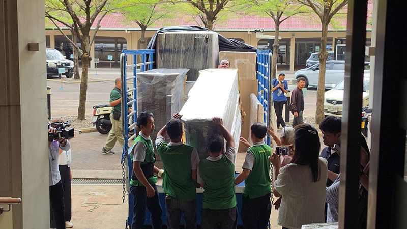 โดยเมื่อช่วงเช้าวันนี้ นายสันติ ปิยะทัต อดีตรัฐมนตรีประจำสำนักนายกรัฐมนตรี ได้ให้เจ้าหน้าที่มาเก็บของที่ชั้น 4 ตึกบัญชาการ 1 โดยมีรถบรรทุกคันเล็กจำนวน 2 คัน และรถกระบะ 1 คัน มาขนของออกไป โดยของที่ย้ายออกไป ส่วนหนึ่งจะไว้ที่บ้าน และไว้ที่ออฟฟิศของนายสันติ ซึ่งในส่วนของรถกระบะเป็นโต๊ะหมู่บูชาและรูปภาพบางส่วน ขณะที่รถบรรทุกคันเล็กขนตู้ไม้ ชุดเฟอร์นิเจอร์โต๊ะทำงาน เก้าอี้ต่างๆ รวมถึงจานชาม