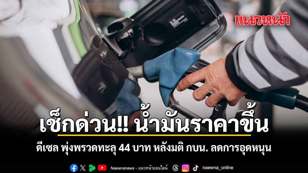 วันนี้ 1 เมษายน 2569 คณะกรรมการกองทุนน้ำมันเชื้อเพลิง (กบน.) ขอแจ้งผลการประชุมวันที่ 1 เม.ย.2569 ว่าที่ประชุมมีมติปรับลดอัตราเงินชดเชยน้ำมันดีเซล 4.11 บาท/ลิตร เป็น 17.78 บาท/ลิตร ส่งผลให้ราคาขายปลีกหน้าสถานีบริการปรับเพิ่มขึ้น 3.50 บาท/ลิตร เป็น 44.24บาท/ลิตร และน้ำมันไบโอดีเซล B20 ปรับลดอัตราเงินชดเชย 3.99 บาท/ลิตร เป็น 20.12 บาท/ลิตร ส่งผลให้ราคาขายปลีกหน้าสถานีบริการปรับเพิ่มขึ้น 3.50 บาทต่อลิตร เป็น 39.24 บาท/ลิตร (ราคาน้ำมันเบนซินผู้ค้าจะเป็นผู้ประกาศแจ้ง)