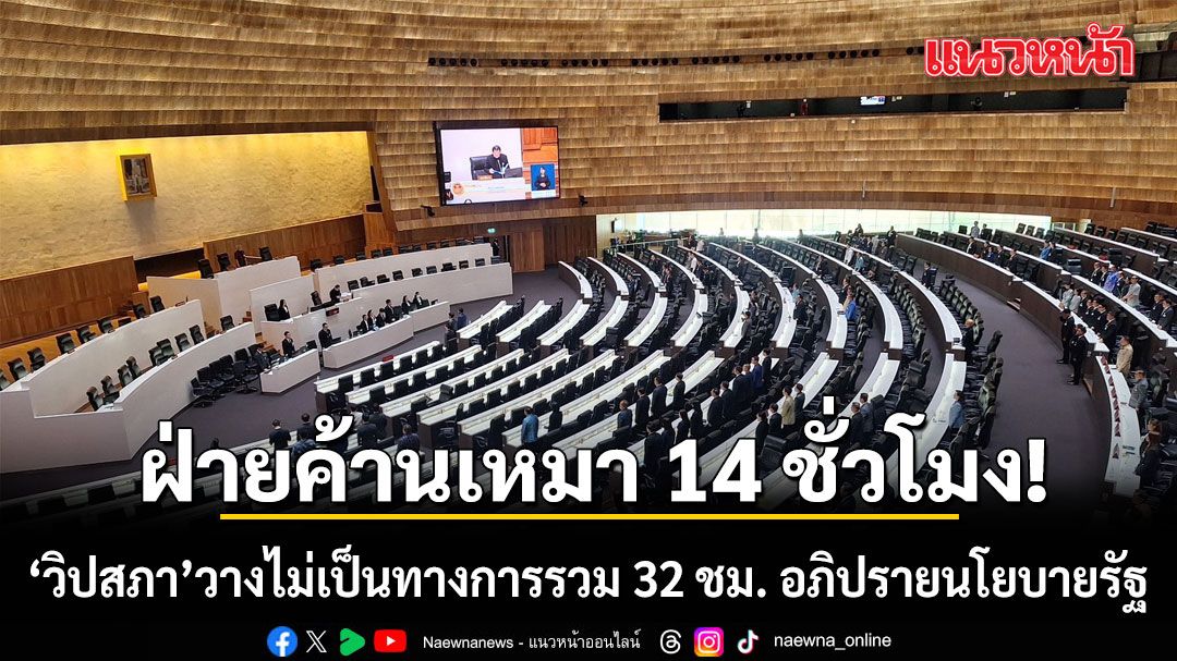 ‘วิปสภาฯ’ วางตุ๊กตาจัดเวลาอภิปรายนโยบายรัฐบาลอย่างไม่เป็นทางการรวม 32 ชั่วโมง ‘ฝ่ายค้าน’ ได้ 14 ชั่วโมง ‘ฝั่งรัฐบาล’ 5 ชั่วโมง ’ครม‘ 6 ชั่วโมง ขณะที่ ‘สว.’ 4 ชั่วโมง รอเคาะอีกครั้ง 7 เม.ย.นี้