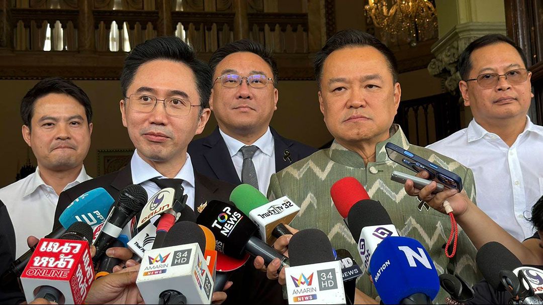 ต่อมาเวลา 12.45 น.ที่ทำเนียบรัฐบาล ภายหลังรับประทานอาหารกลางวันร่วมกัน นายอนุทิน ชาญวีรกูล นายกรัฐมนตรี และนายยศชนัน วงศ์สวัสดิ์ รองนายกฯและรมว.อุดมศึกษา วิทยาศาสตร์วิจัยและนวัตกรรม ได้ลงมาให้สัมภาษณ์สื่อมวลชนบริเวณหน้าตึกไทยคู่ฟ้า โดยนายอนุทิน กล่าวว่าวันนี้นัดกันมาหารือแนวทางการทำงานร่วมกันโดยใช้เวลาประมาณ 1 ชั่วโมง ได้พูดกันหลายเรื่องและทั้งพรรคภูมิใจไทยและเพื่อไทยเคยมีพื้นฐานการทำงานร่วมกันมา คิดว่าเมื่อรัฐบาลชุดใหม่ได้ถวายสัตย์ปฏิญาณและเริ่มทำงาน การทำงานก็จะเป็นไปอย่างราบรื่น