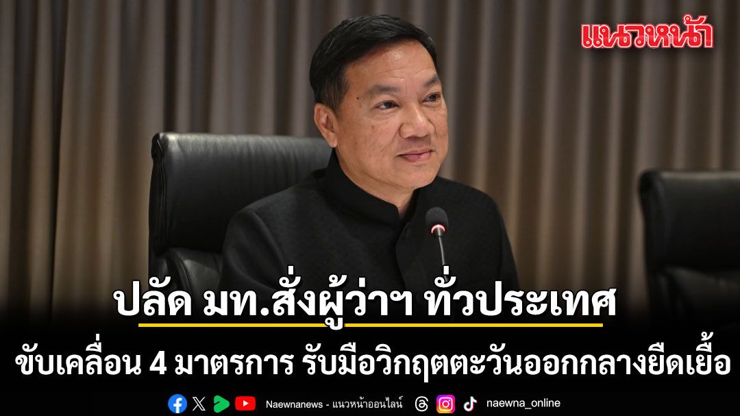 ‘ปลัด มท.’ สั่ง ‘ผู้ว่าฯ ทั่วประเทศ’ ดันขับเคลื่อน 4 มาตรการเพิ่มเติมบรรเทาผลกระทบวิกฤตตะวันออกกลาง ยึดครอบคลุมทุกกลุ่มเป้าหมาย ‘คุมเข้มราคาสินค้าเกษตร – รณรงค์ใช้ยานพาหนะสาธารณะ - ดูแลเส้นทาง - ความพร้อมสถานีบริการน้ำมันให้เพียงพอ‘ รับการเดินทางช่วงเทศกาล ’สงกรานต์‘