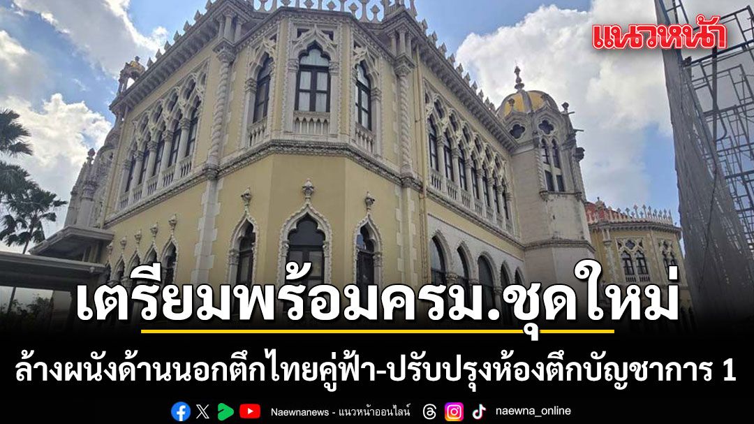 ทำเนียบฯเตรียมพร้อมครม.ชุดใหม่ ล้างผนังด้านนอกตึกไทยคู่ฟ้า-ขยับปรับปรุงห้องตึกบัญชาการ 1