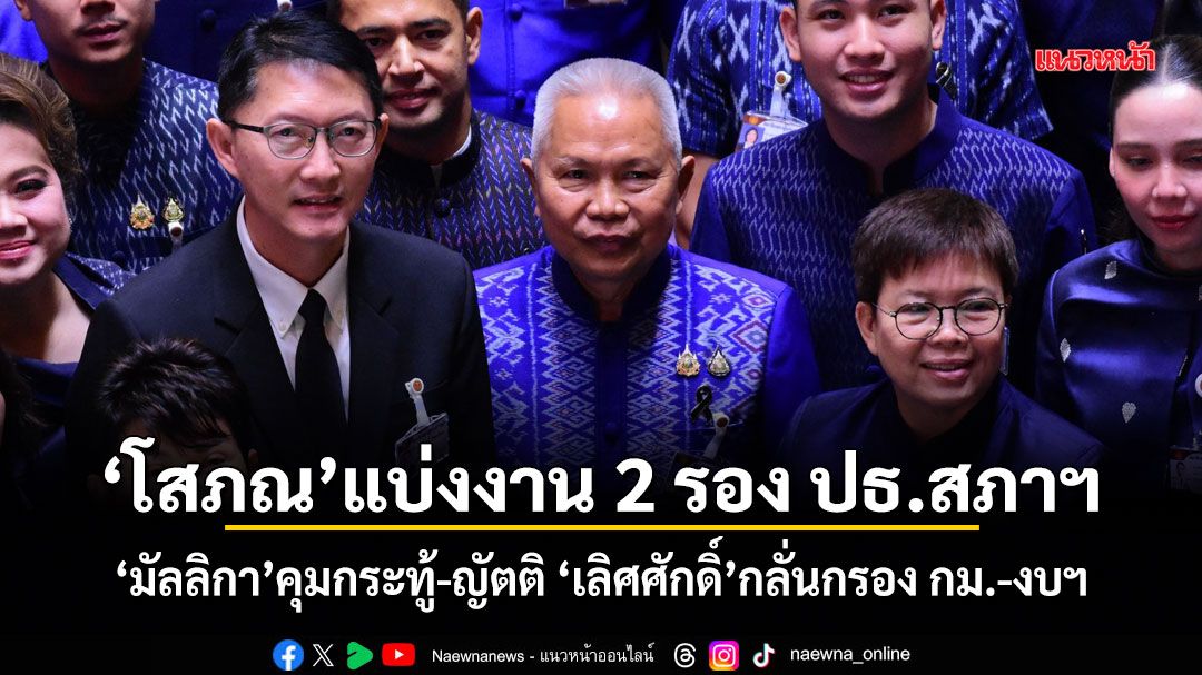 "โสภณ"แบ่งงาน 2 รองประธานสภาฯ "มัลลิกา"ดูกระทู้-ญัตติ-อนุญาตข้อมูลประกอบอภิปราย-สส.ลาประชุม ขณะที่"เลิศศักดิ์"กลั่นกรอง พ.ร.บ.-พ.ร.ก.และกฎหมายเกี่ยวกับการเงิน