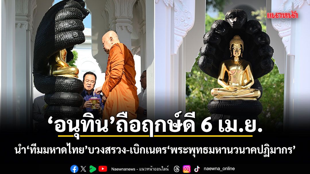 "อนุทิน"ถือฤกษ์มงคล 6 เมษายน นำ 3 รมช.ใหม่-คณะผู้บริหาร-ข้าราชการมหาดไทย ประกอบพิธีบวงสรวง-เบิกเนตร"พระพุทธมหานวนาคปฏิมากร" ปลุกสร้างขวัญกำลังใจ"เหล่าสิงห์" บำบัดทุกข์ บำรุงสุขให้ประชาชน