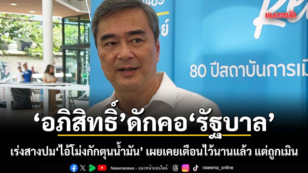 "อภิสิทธิ์"ดักคอ"รัฐบาล" เร่งสางปม"ไอ้โม่งกักตุนน้ำมัน" เผยเคยเตือนไว้นานแล้ว แต่ถูกเมิน จี้"โรงกลั่น"ช่วยแบกรับภาระประชาชนกลุ่มเปราะบาง บอกอยากเห็นมาตรการเป็นรูปธรรม เพราะตอนนี้ยังไม่มีการปฏิบัติจริง