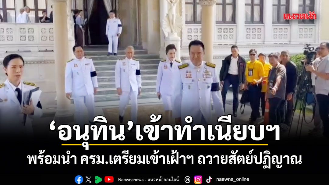 จากนั้น ครม.ชุดใหม่ จะถ่ายภาพหมู่ร่วมกันที่บริเวณหน้าตึกไทยคู่ฟ้า และในเวลา 17.00 น. นายอนุทิน ชาญวีรกูล นายกรัฐมนตรี จะนำ ครม.ชุดใหม่ ขึ้นรถยนต์ที่สำนักเลขาธิการคณะรัฐมนตรี จัดไว้ให้ เดินทางออกจากทำเนียบรัฐบาล ไปยังพระที่นั่งอัมพรสถาน พระราชวังดุสิต เพื่อเข้าเฝ้าถวายสัตย์ปฏิญาณ ในเวลา 19.00 น.