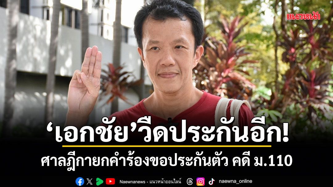 ศาลฎีกามีคำสั่งยกคำร้องขอประกันตัว เอกชัย หงส์กังวาน นักกิจกรรมทางการเมืองและผู้ต้องขังระหว่างฎีกาคดีมาตรา 110 จากกรณีถูกกล่าวหาว่าขัดขวางขบวนเสด็จของพระราชินี หลังมีการยื่นประกันตัวไปเมื่อ 31 มี.ค. 2569