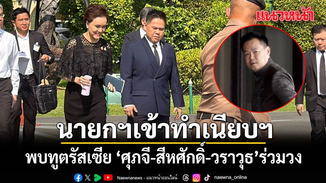 ขณะที่เวลา 09.23 น. นายอนุทิน ชาญวีรกูล นายกรัฐมนตรี ได้เดินทางเข้าทำเนียบฯ โดยขับรถยนต์ไฟฟ้าส่วนตัว เข้ามายังตึกไทยคู่ฟ้า โดยก่อนหน้านั้นมีนายสีหศักดิ์ พวงเกตุแก้ว รองนายกรัฐมนตรี และรมว.ต่างประเทศ และเอกอัครราชทูตรัสเซีย ประจำประเทศไทย มารอพบอยู่แล้ว ขณะเดียวกัน ภายหลังประชุมหารือข้อราชการ เรื่องแนวทางการบริหารจัดการเม็ดพลาสติกเสร็จสิ้น ในเวลา 09.27 น. ทั้งนางศุภจี นายวราวุธ และคณะ ได้เดินจากตึกบัญชาการ 1 ขึ้นไปสมทบที่ตึกไทยคู่ฟ้า