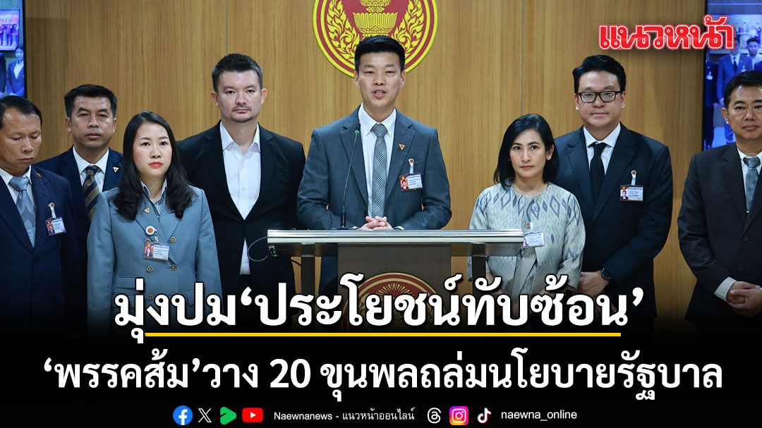 ‘พรรคส้ม’ วาง 20 ขุนพลอภิปราย ’นโยบายรัฐบาล พรุ่งนี้ ไม่เน้นชี้เป้ารายตัว แต่มุ่งปม ‘ประโยชน์ทับซ้อน’ ที่สังคมครหา ชี้ไม่อยากเห็นจุดเริ่มต้นทำหน้าที่รบ.ทางการ กลับเกิดเหตุการเมืองให้ปชช.ตั้งคำถาม ‘รวบ-ใช้อำนาจมิชอบ’