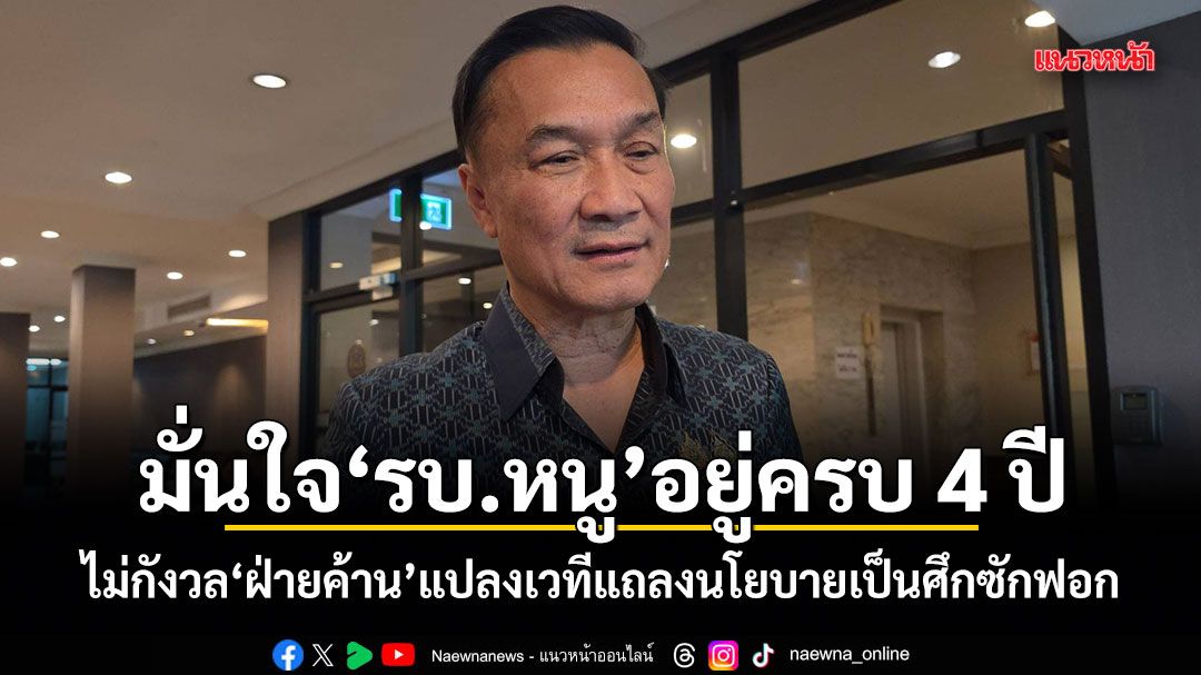 "ทรงศักดิ์"มั่นใจ"รบ.หนู"อยู่ครบ 4 ปี ไม่กังวล"ฝ่ายค้าน"แปลงเวทีแถลงนโยบายเป็นศึกซักฟอก ชี้อภิปรายเรียบๆ ประชาชนอาจดูแล้วน่าเบื่อ