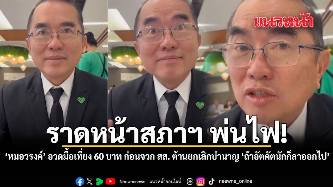 วานนี้ 8 เมษายน 2569 นพ.วรงค์ เดชกิจวิกรม หรือที่เรียกกันว่า หมอวรงค์ สส.บัญชีรายชื่อ พรรคไทยภักดี โพสต์คลิปวิดีโอผ่านโซเชียลมีเดีย ขณะนั่งรับประทานอาหารกลางวัน ณ โรงอาหารรัฐสภา พร้อมระบุข้อความว่า "มื้อกลางวัน 8 เมษายน เป็นเส้นใหญ่ราดหน้า ราคา 60 บาทครับ ที่โรงอาหารของสภาฯ"