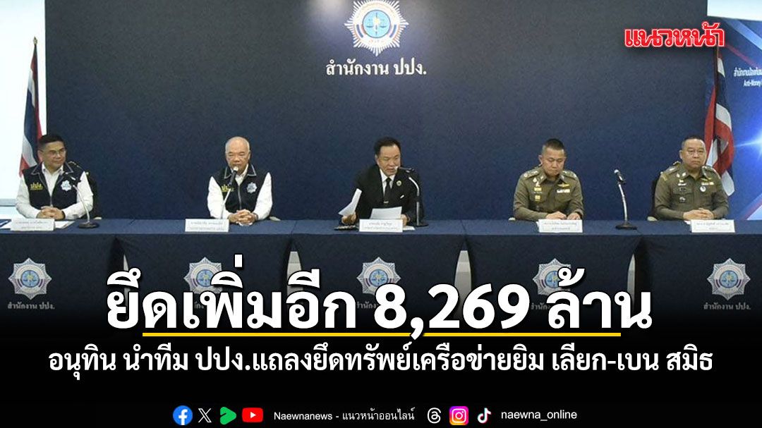 อนุทิน นำทีมแถลงยึดทรัพย์เครือข่ายยิม เลียก-เบน สมิธ เพิ่มอีก 8,269 ล้าน ขอบคุณหน่วยงานแข็งขัน แม้ผู้ต้องหาใช้เทคโนโลยีขั้นสูง-อำนาจเงินมหาศาล แต่เอาผิดได้ ย้ำขอยึดหลักปราบปราม ปิดชื่อ ถือพฤติกรรม ลั่นถ้าทำผิดไม่มีข้อยกเว้น