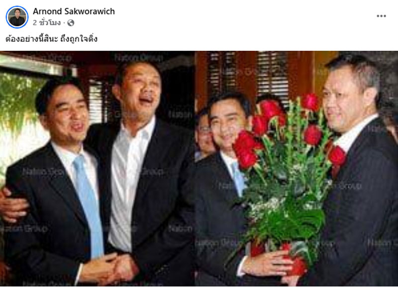 ขณะเดียวกัน ผศ.ดร.อานนท์ ศักดิ์วรวิชญ์ อาจารย์ประจำคณะสถิติประยุกต์ สถาบันบัณฑิตพัฒนบริหารศาสตร์ (นิด้า) โพสต์ภาพ เนวิน ชิดชอบ คู่กับ อภิสิทธิ์ เวชชาชีวะ สมัยที่ เนวิน ชิดชอบ พาสส.กลุ่มเพื่อนเนวินย้ายขั้วมาสนับสนุนนานอภิสิทธิ เป็นนายกฯ