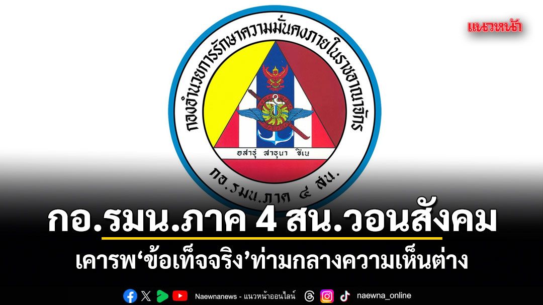 16 เมษายน 2569 เพจเฟซบุ๊ก "กองอำนวยการรักษาความมั่นคงภายในภาค 4 ส่วนหน้า" โพสต์ข้อความระบุว่า "...ท่ามกลางความเห็นที่หลากหลายและความรู้สึกที่แตกต่าง แม้ความจริงอาจไม่ถูกใจทุกฝ่าย แต่การยืนหยัดบนข้อเท็จจริง คือ ความกล้าหาญ ที่สังคมควรให้คุณค่าและร่วมกันสนับสนุน..."